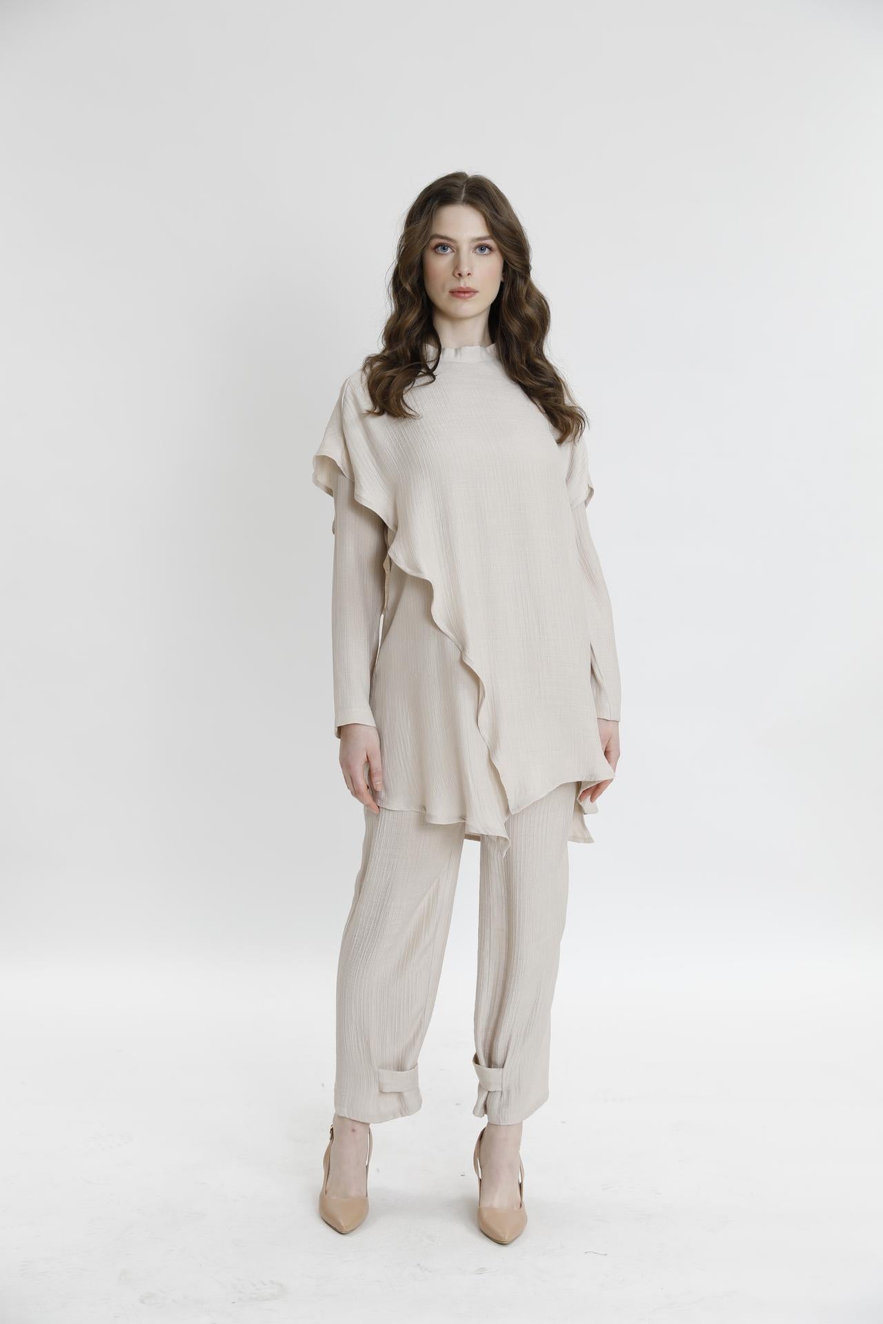 Asimetrik Kesim Bluz-Pantolon Takım