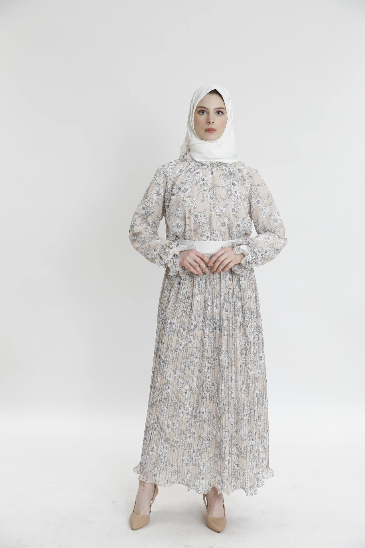Eteği Pliseli Şifon Desenli Etek-Bluz Takım