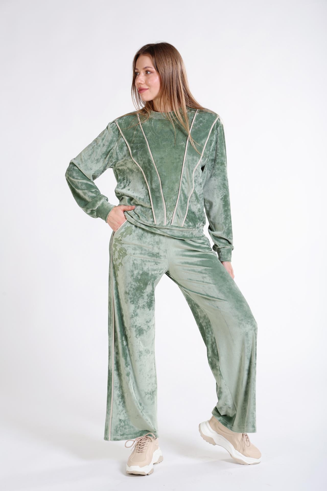 Lazer Desenli Ve Biye Detaylı Kadife Sweatshirt