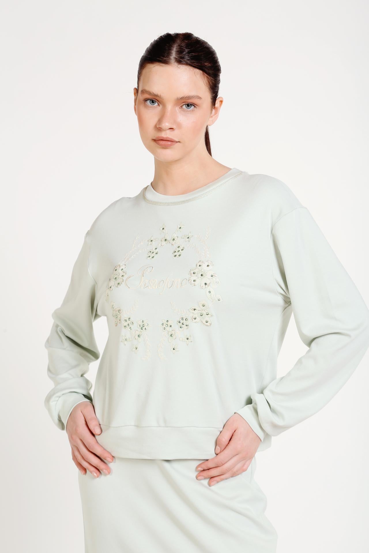 Nakış Ve Swarovski Taş Süslemeli Sweatshirt