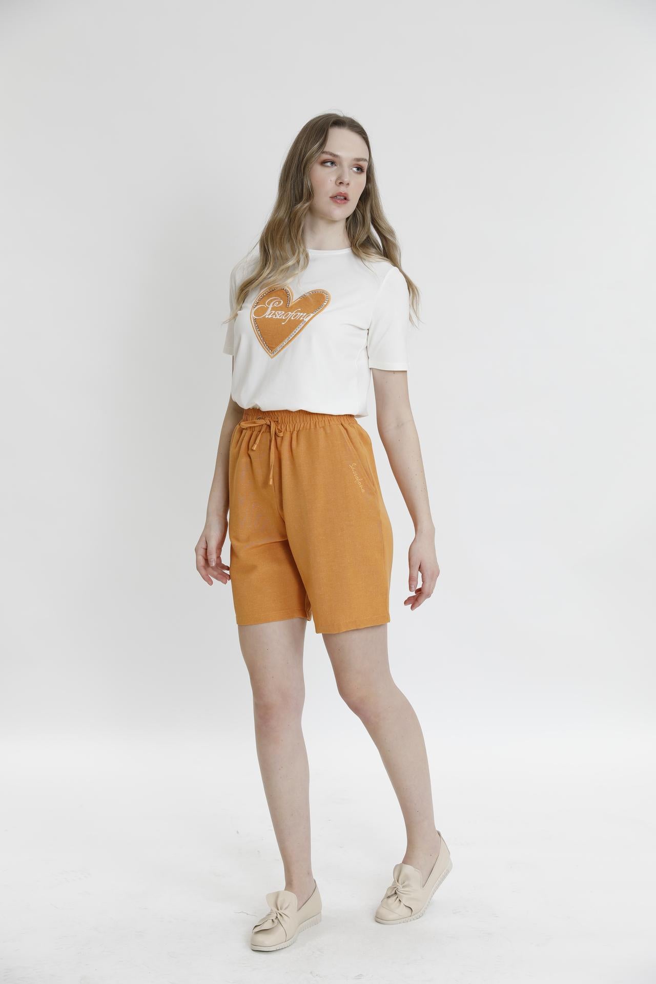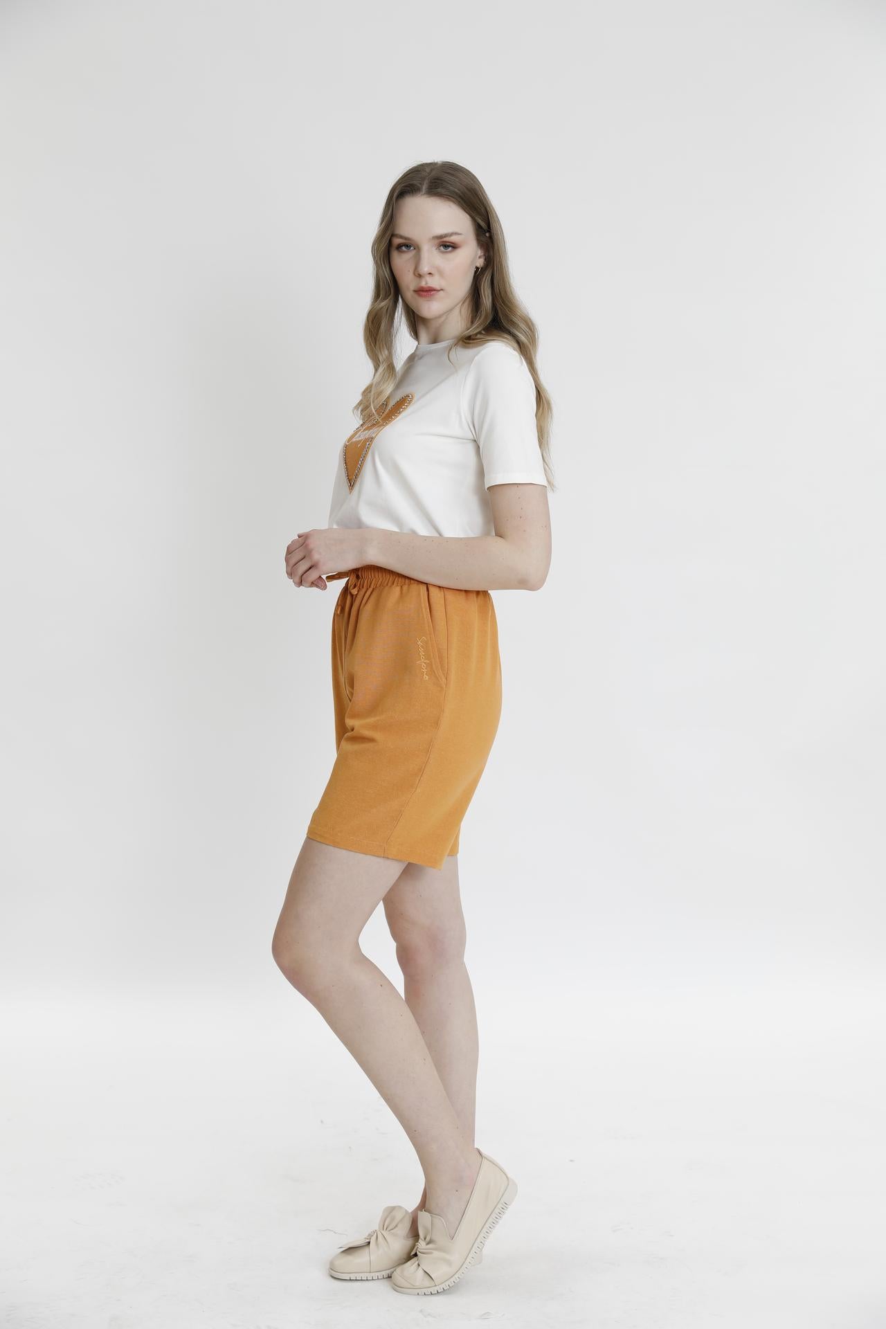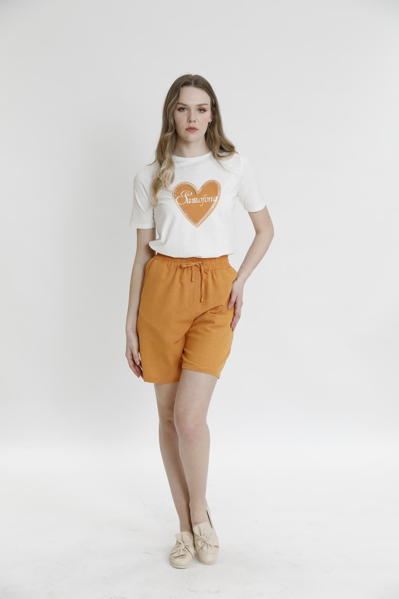 Önü Kalp Nakış Ve Taş Süsleme Detaylı Kısa Kollu Tişört
