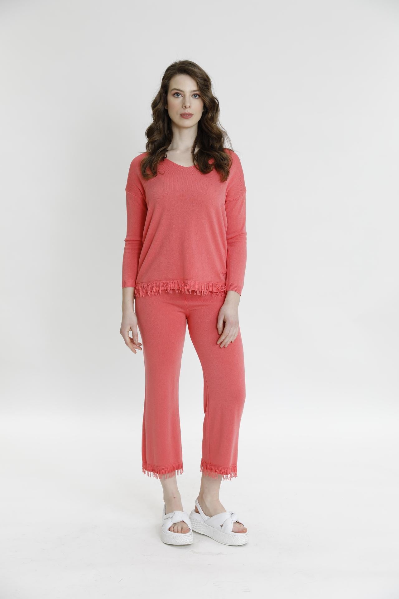 Püskül Detaylı Triko Kazak-Pantolon Takım