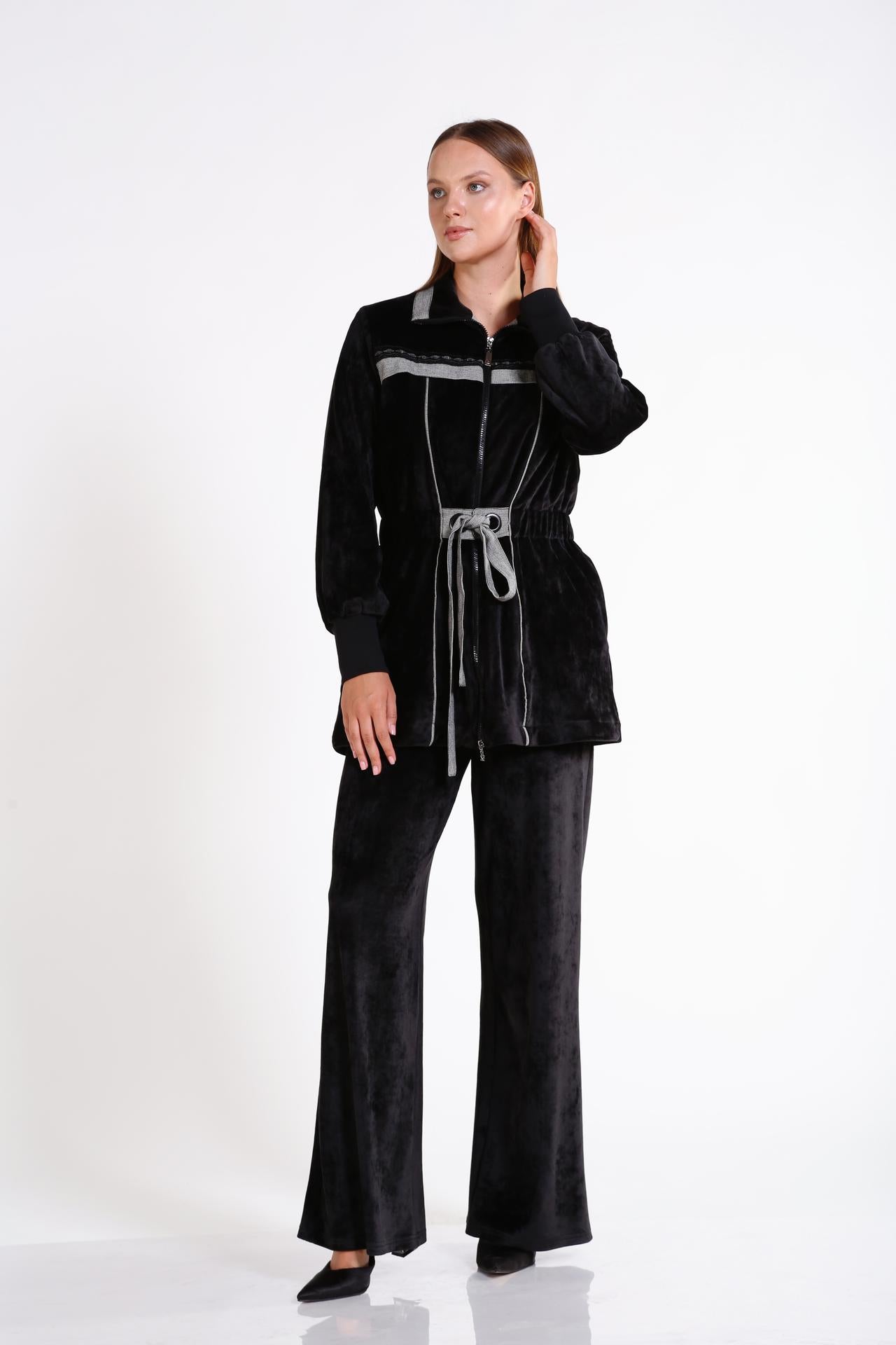 <h1>Sassofono Şerit Aksesuar Detaylı Kadife Mont</h1>