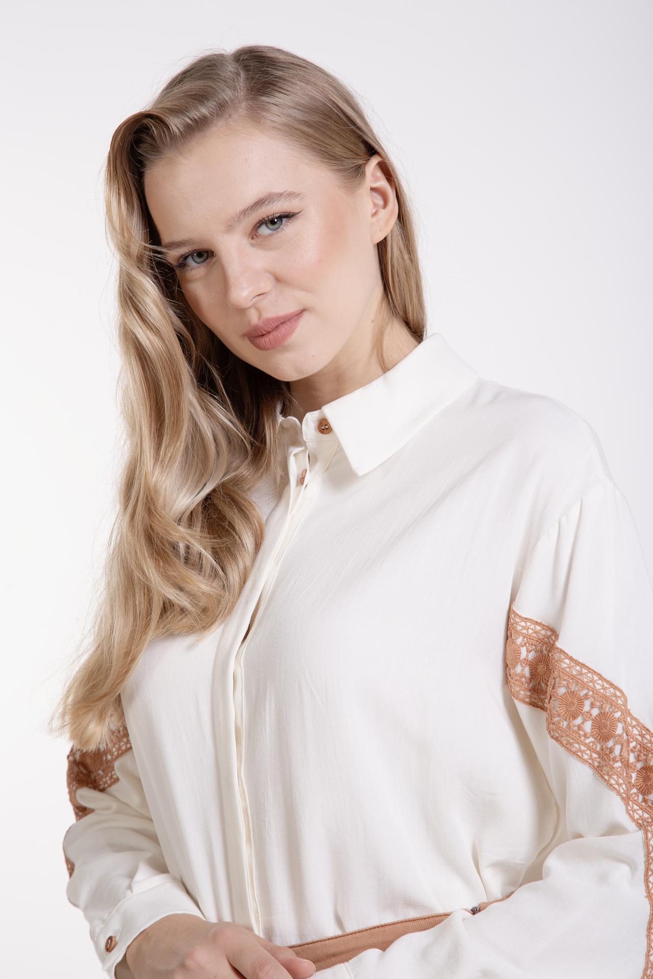 Profilinize sofistike bir dokunuş katmak için Sassofono'nun özgün tarzını keşfedin. İtalyan şıklığını ve zarafetini yansıtan bu şerit dantel süslemeli gömlek, kadın giyim seçeneklerinizi bir üst seviyeye taşıyacaktır. Göz alıcı tasarımı ve kaliteli malzemesiyle, iş yerinde, toplantılarda ya da özel etkinliklerde rahat ve şık hissetmek için idealdir.
