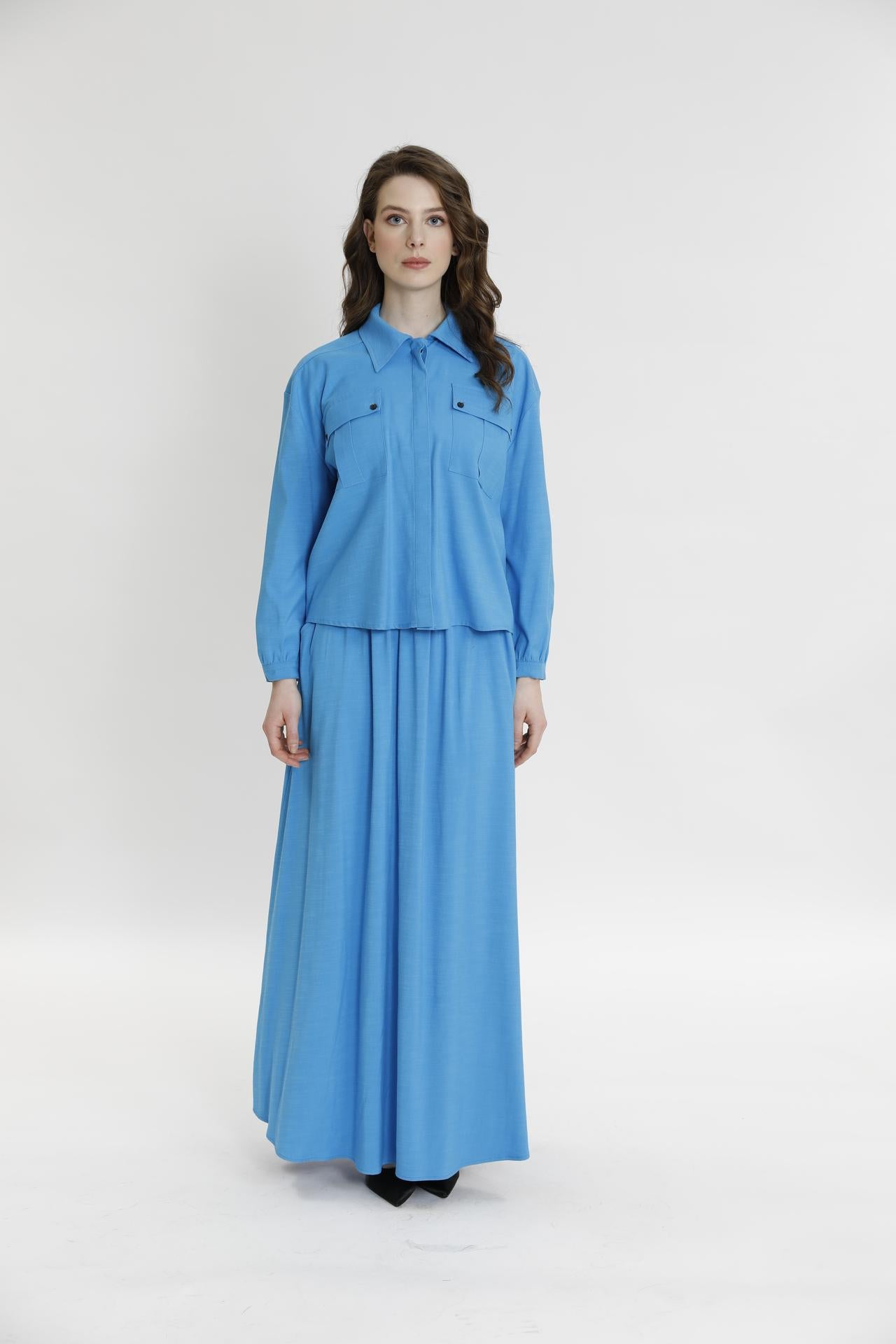 Sırtı Nakış Detaylı Gömlek-Etek Takım