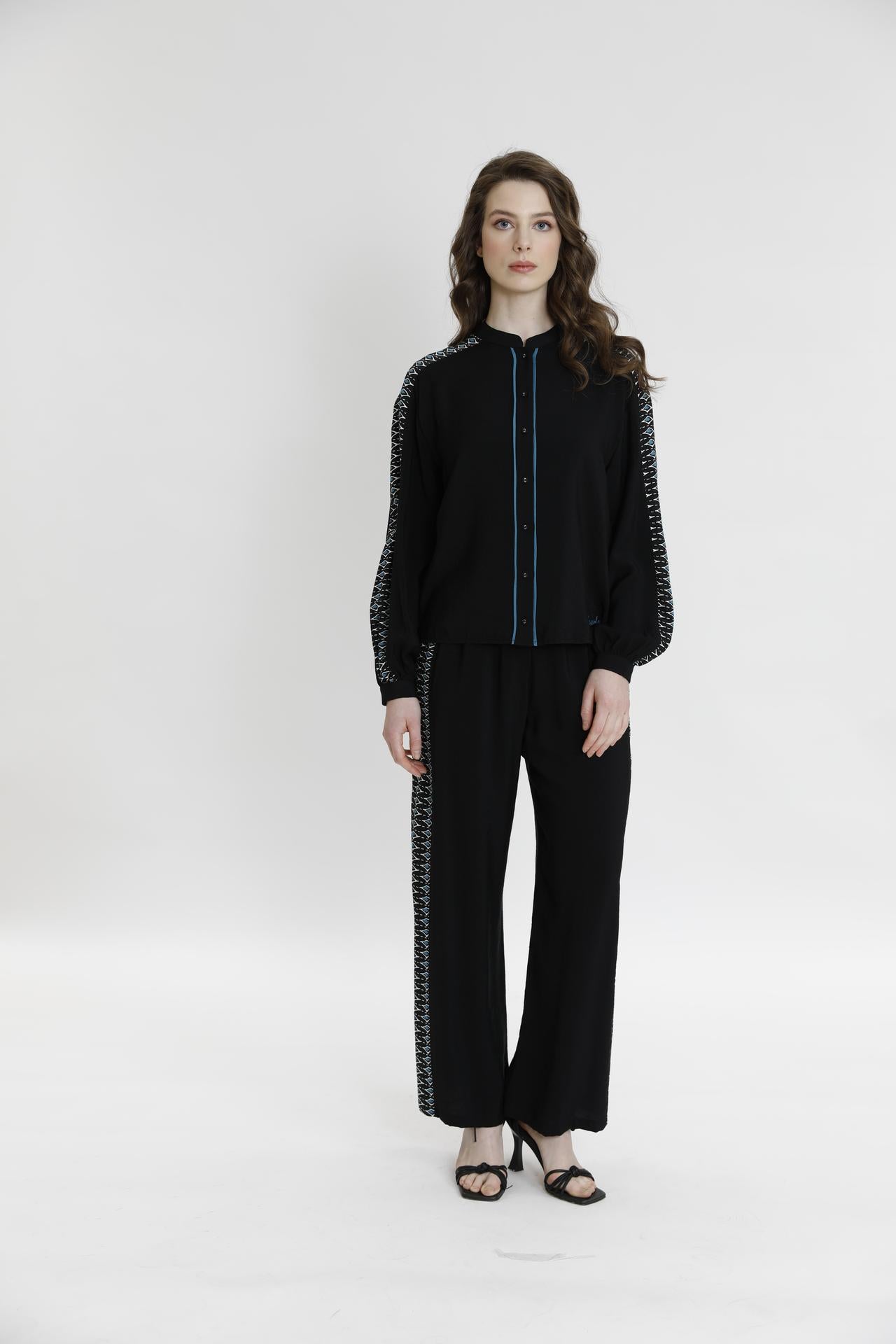 Yanı Desen Detaylı Gömlek-Pantolon Takım