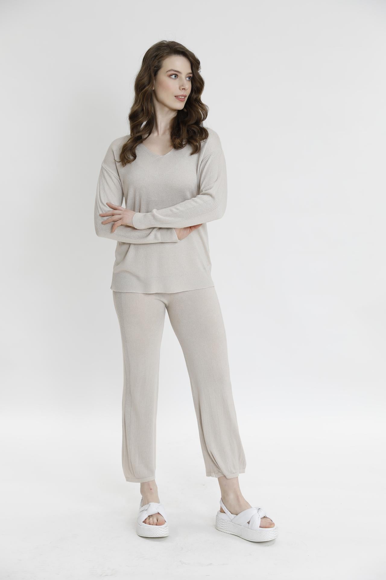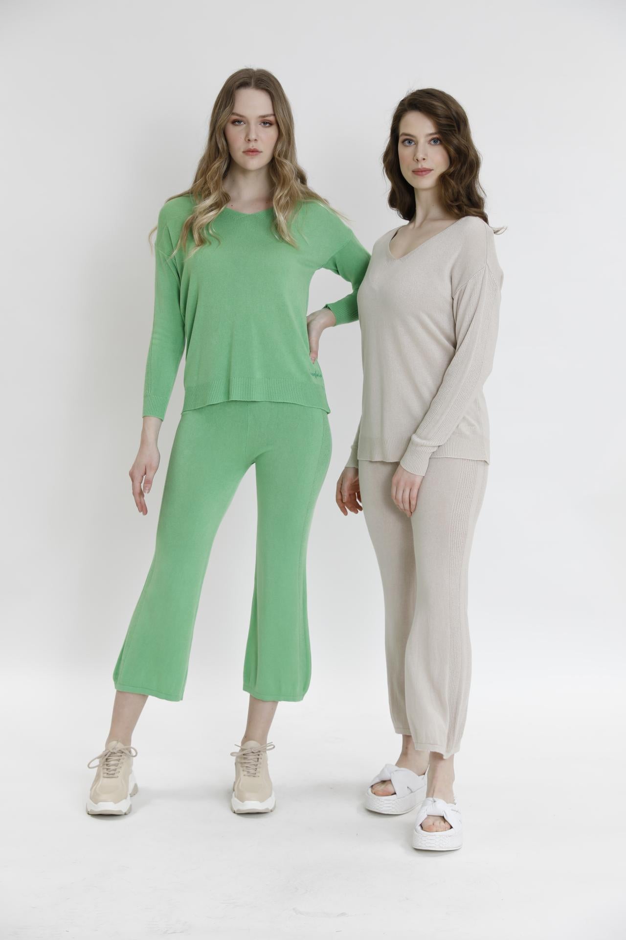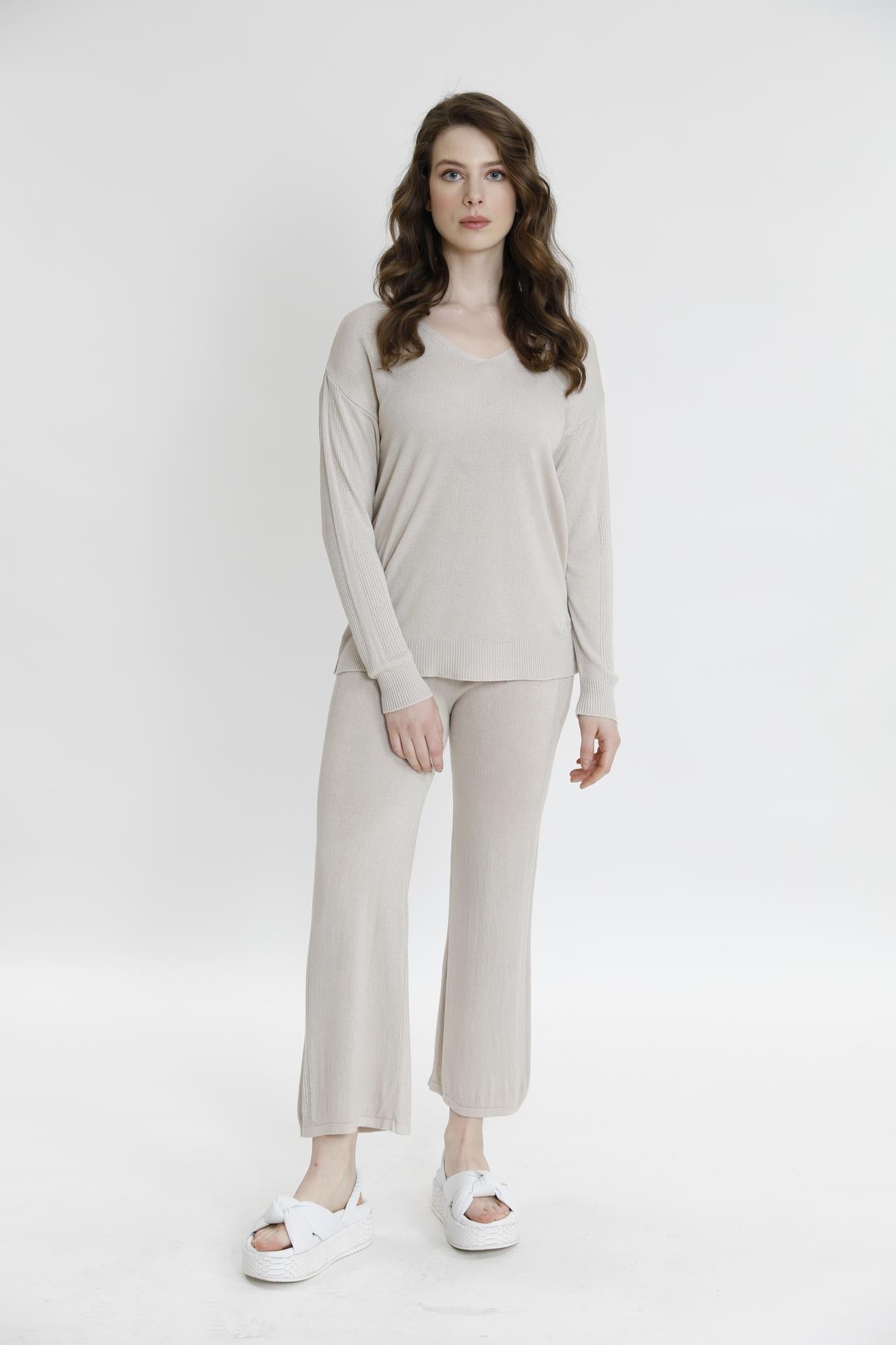 Yanı Örgü Detaylı Triko Kazak-Pantolon Takım