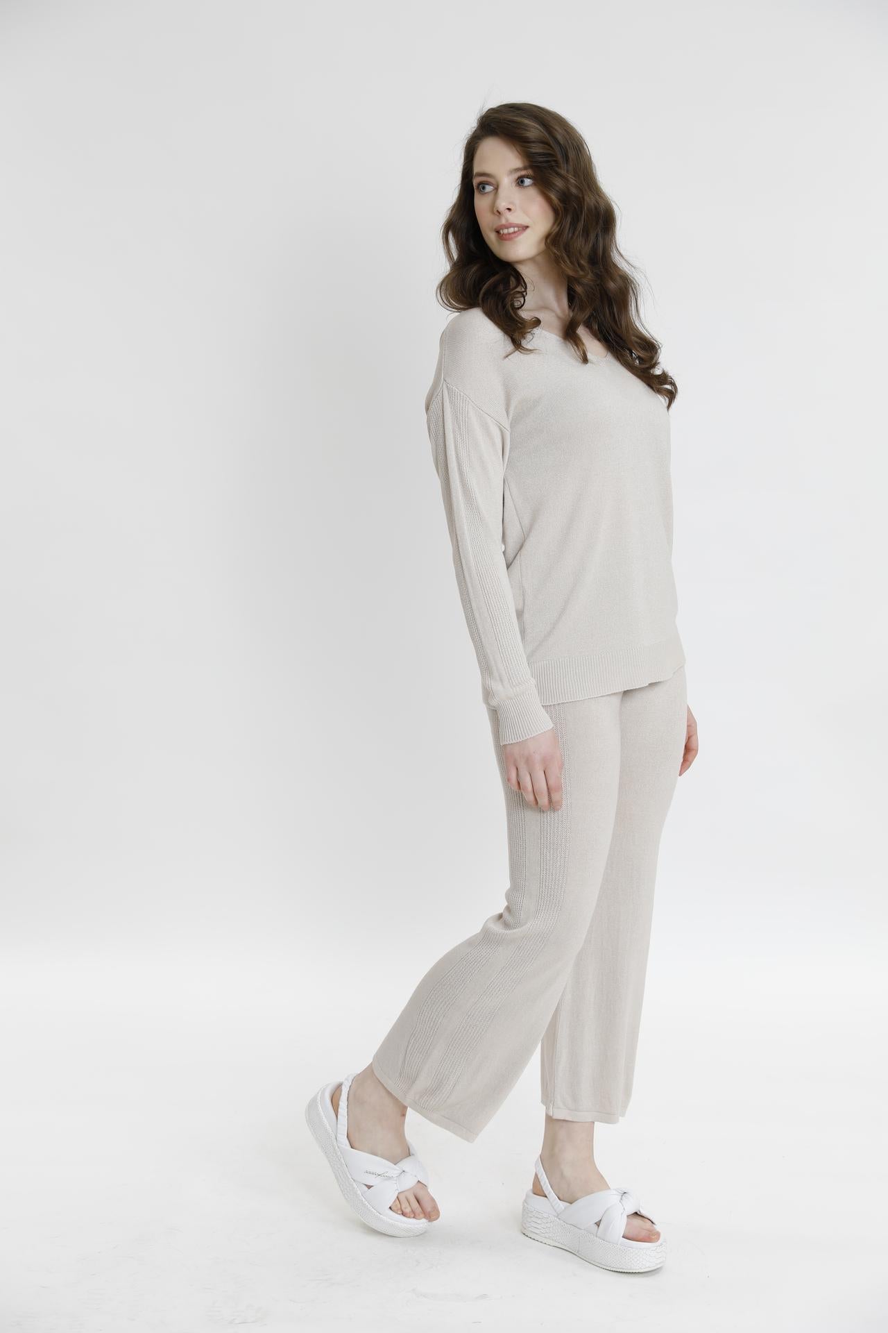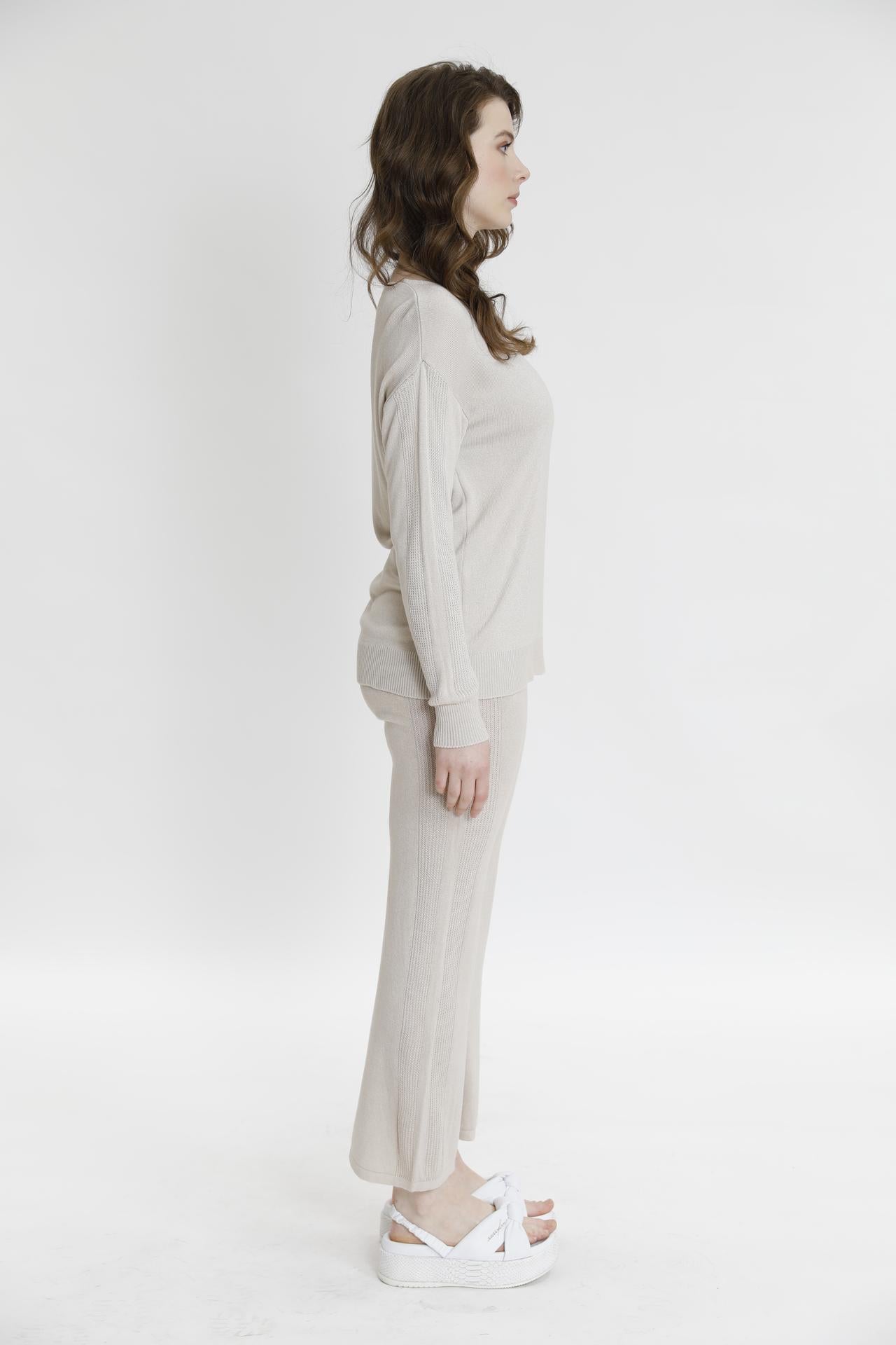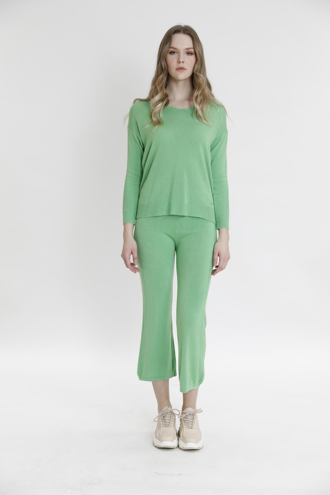 Yanı Örgü Detaylı Triko Kazak-Pantolon Takım