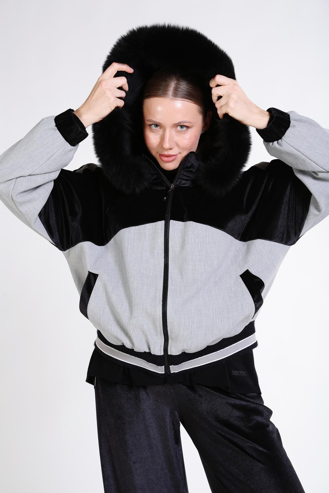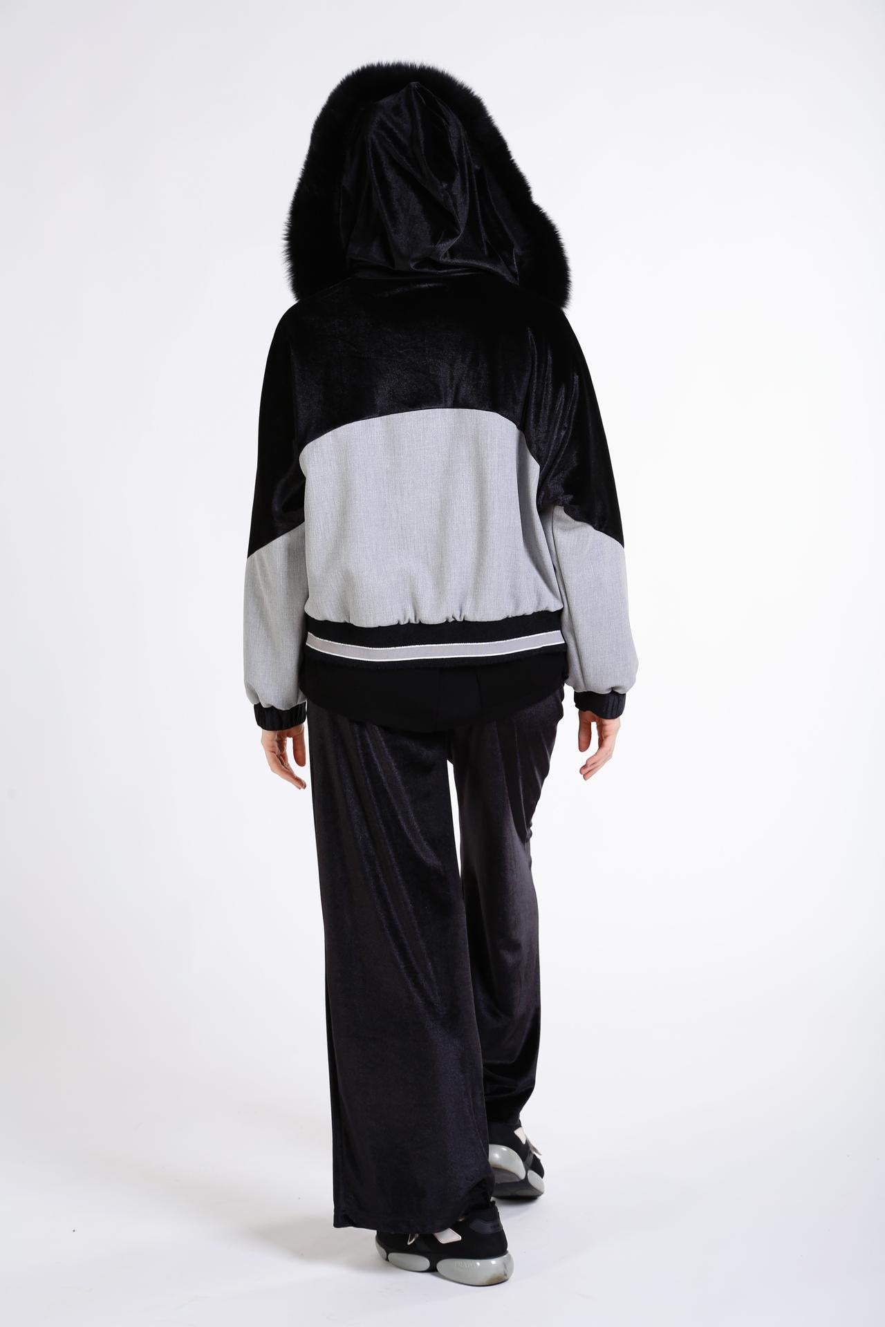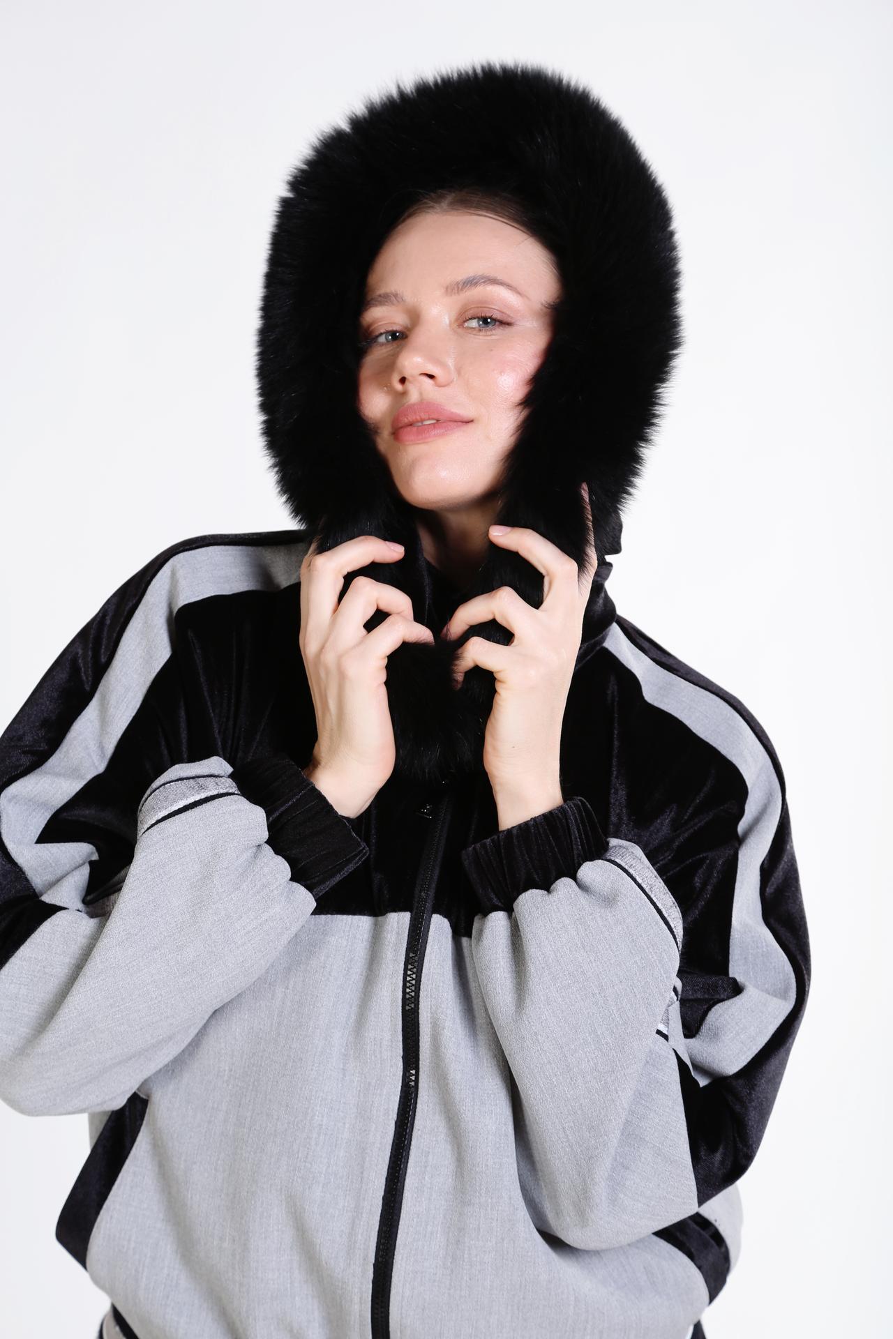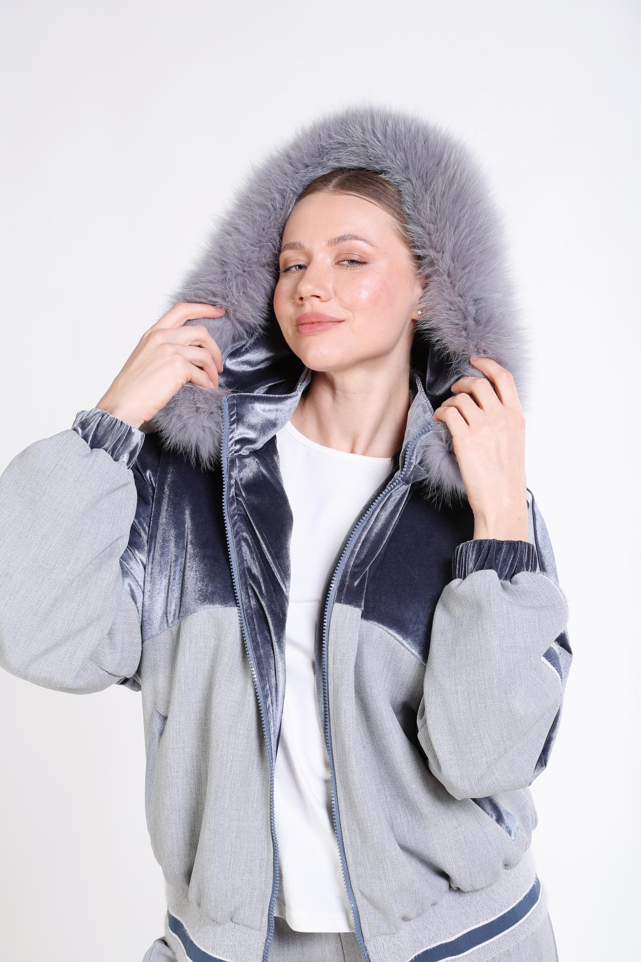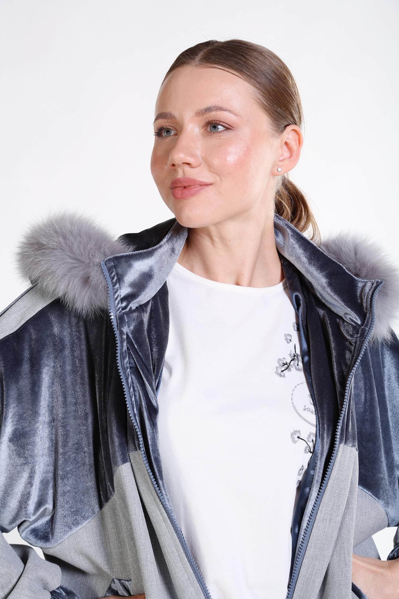 Пальто с меховым капюшоном и бархатной деталью гарни