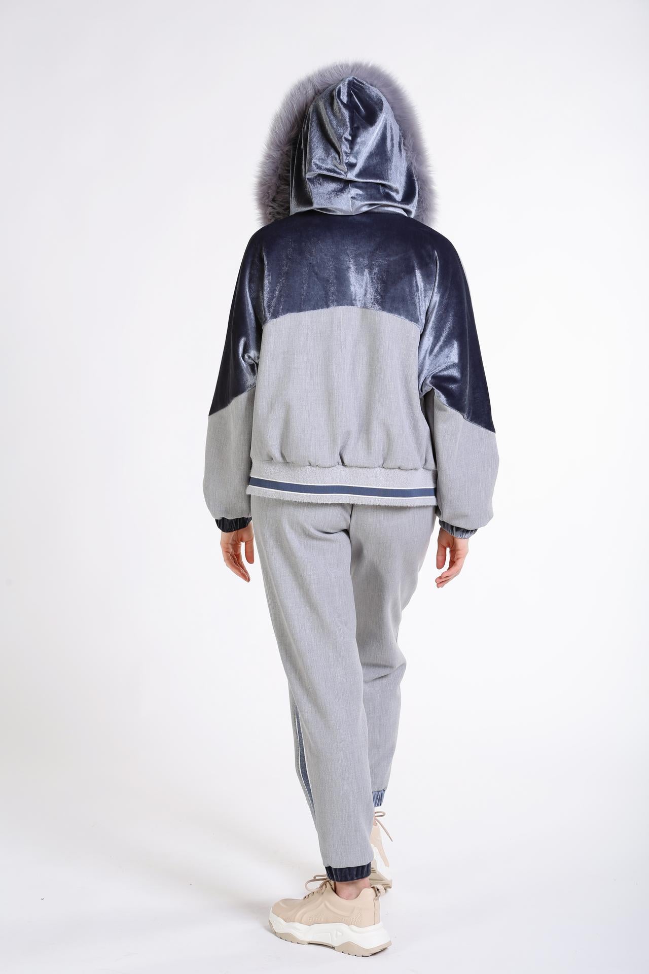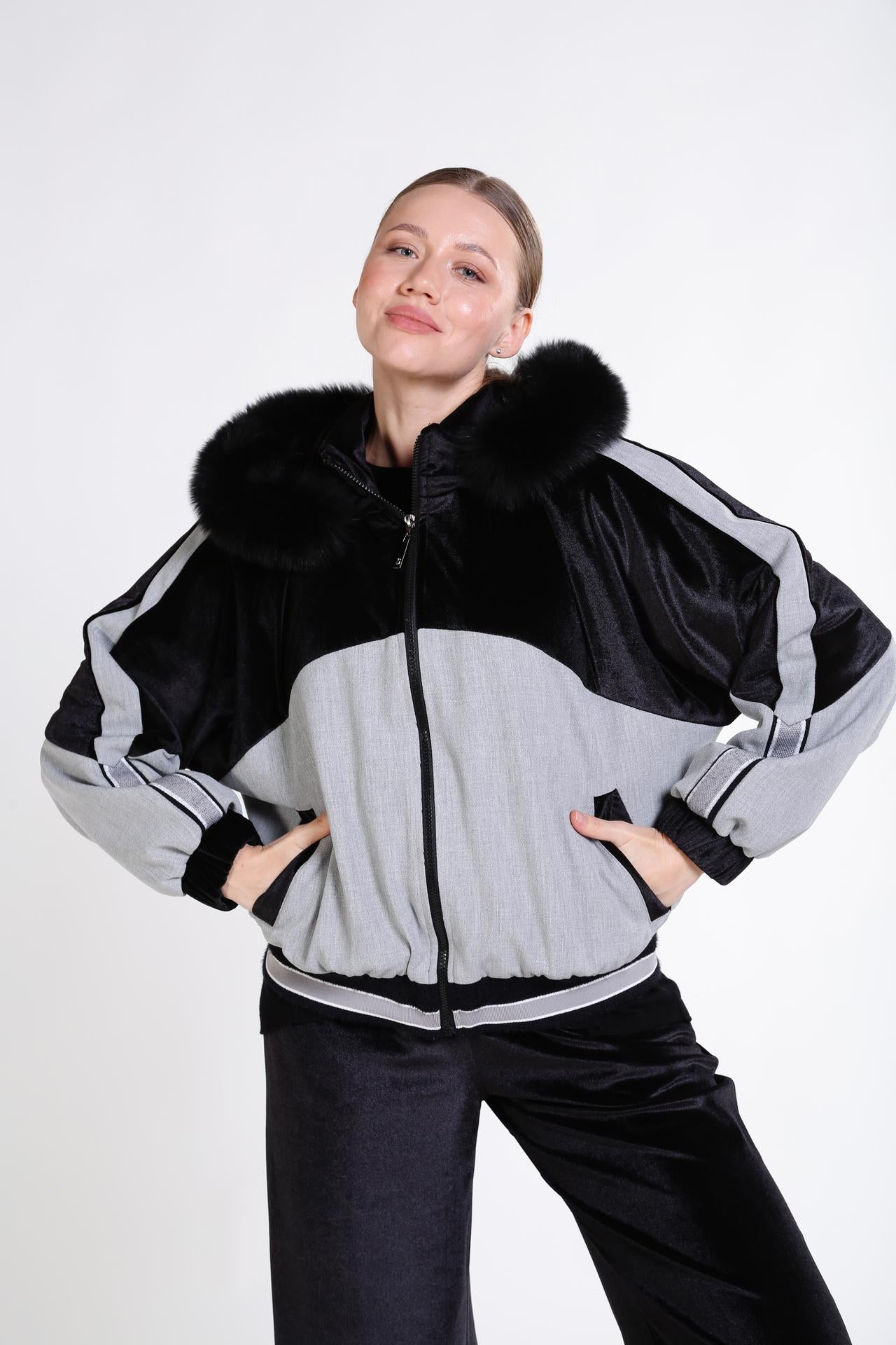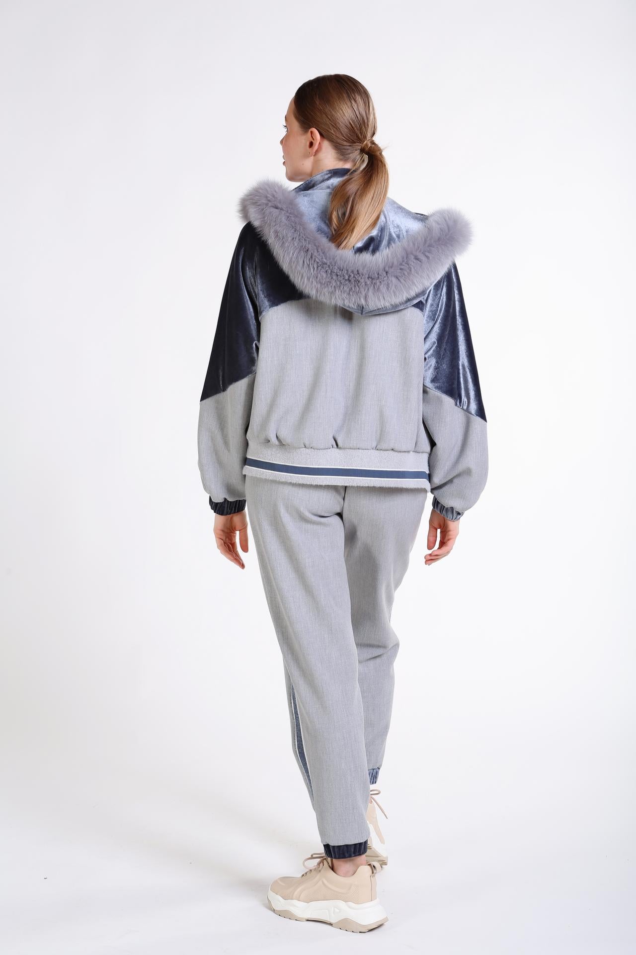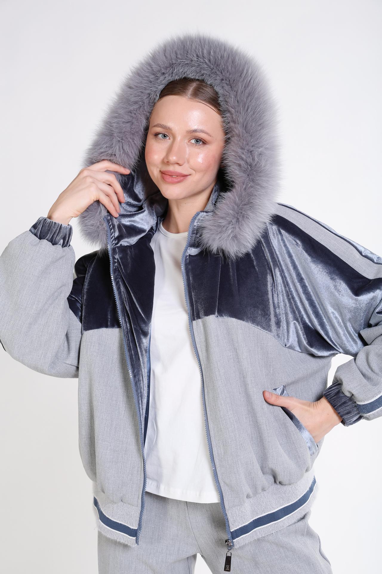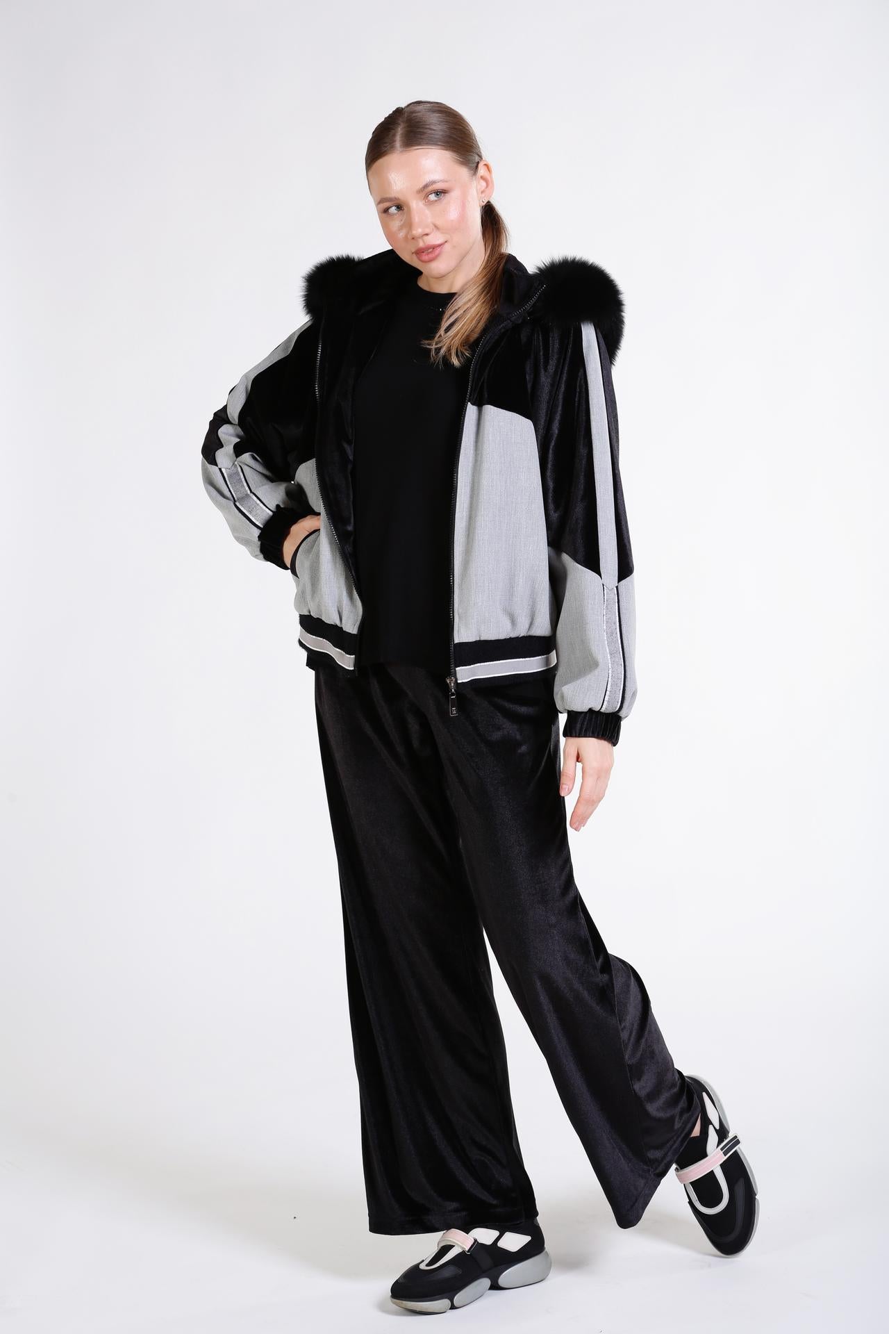 Пальто с меховым капюшоном и бархатной деталью гарни