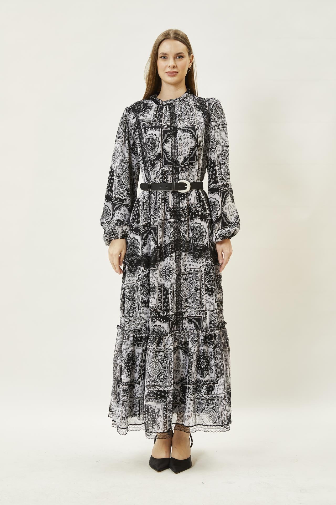 Шифоновое платье с поясом и узором, тщательно разработанное Sassofono, адаптировано к любому месту и случаю. Эта идеальная вещь обеспечивает удобство использования и стильный внешний вид благодаря шифоновой ткани с элегантным рисунком и тонким пояском.