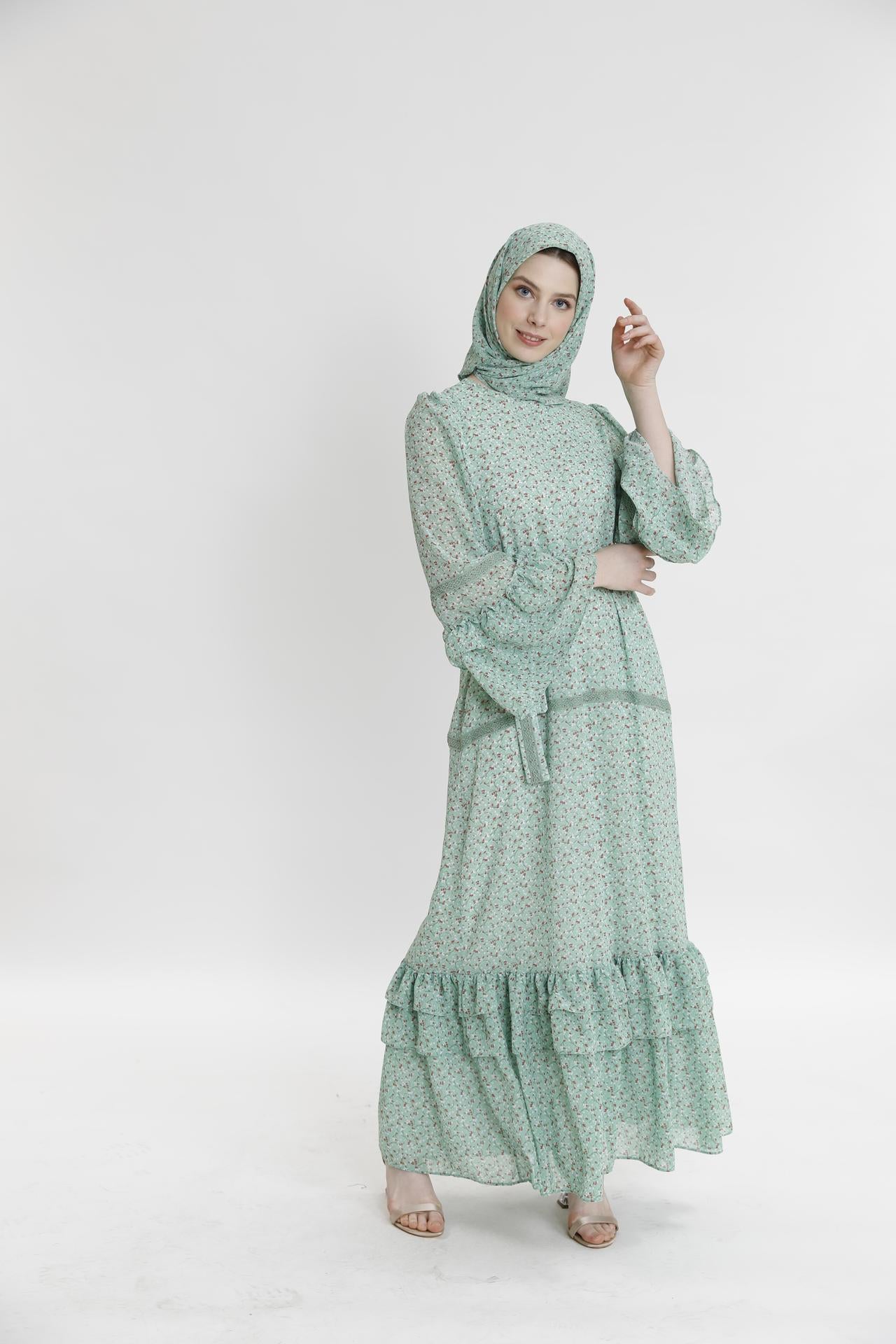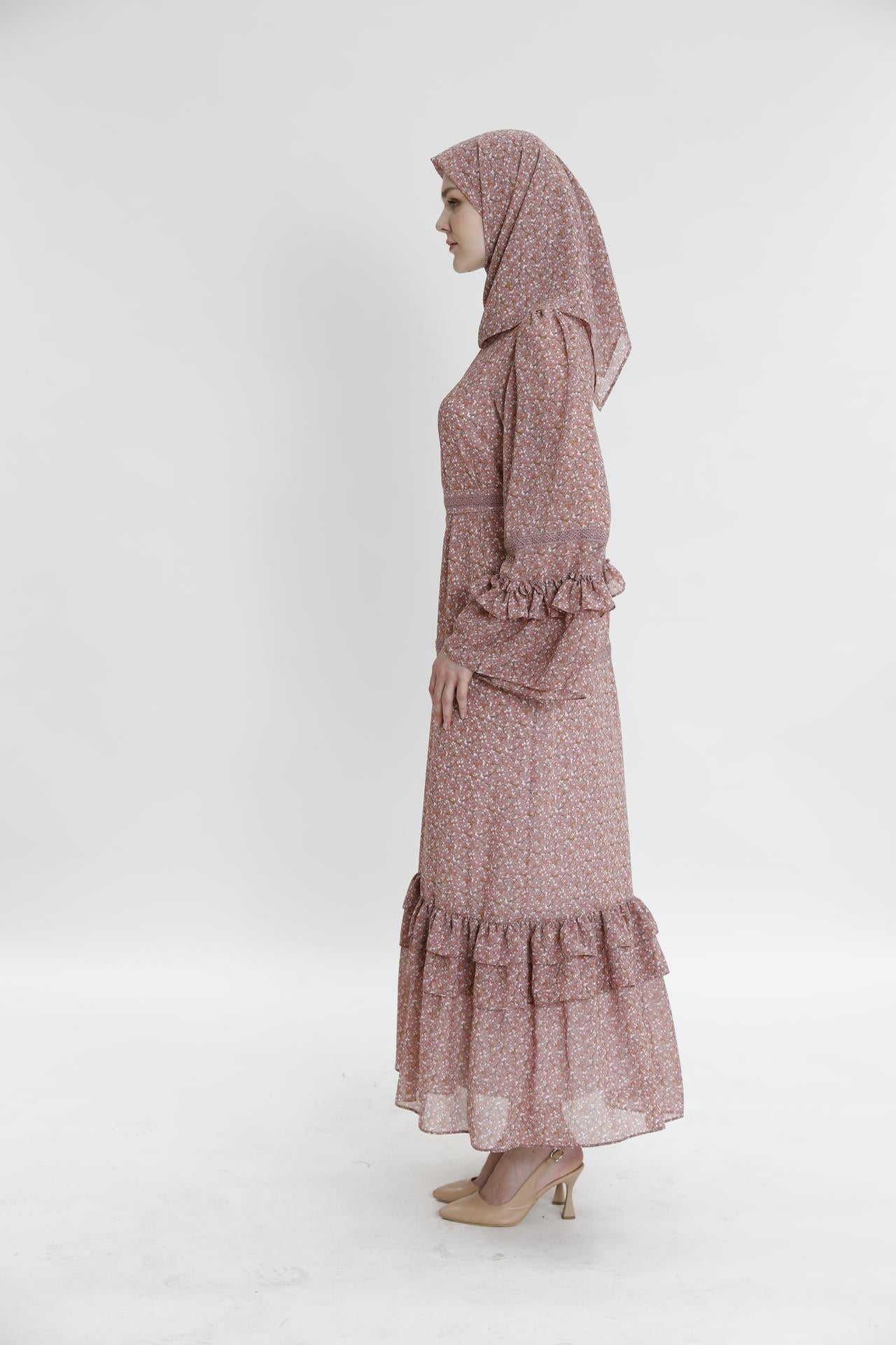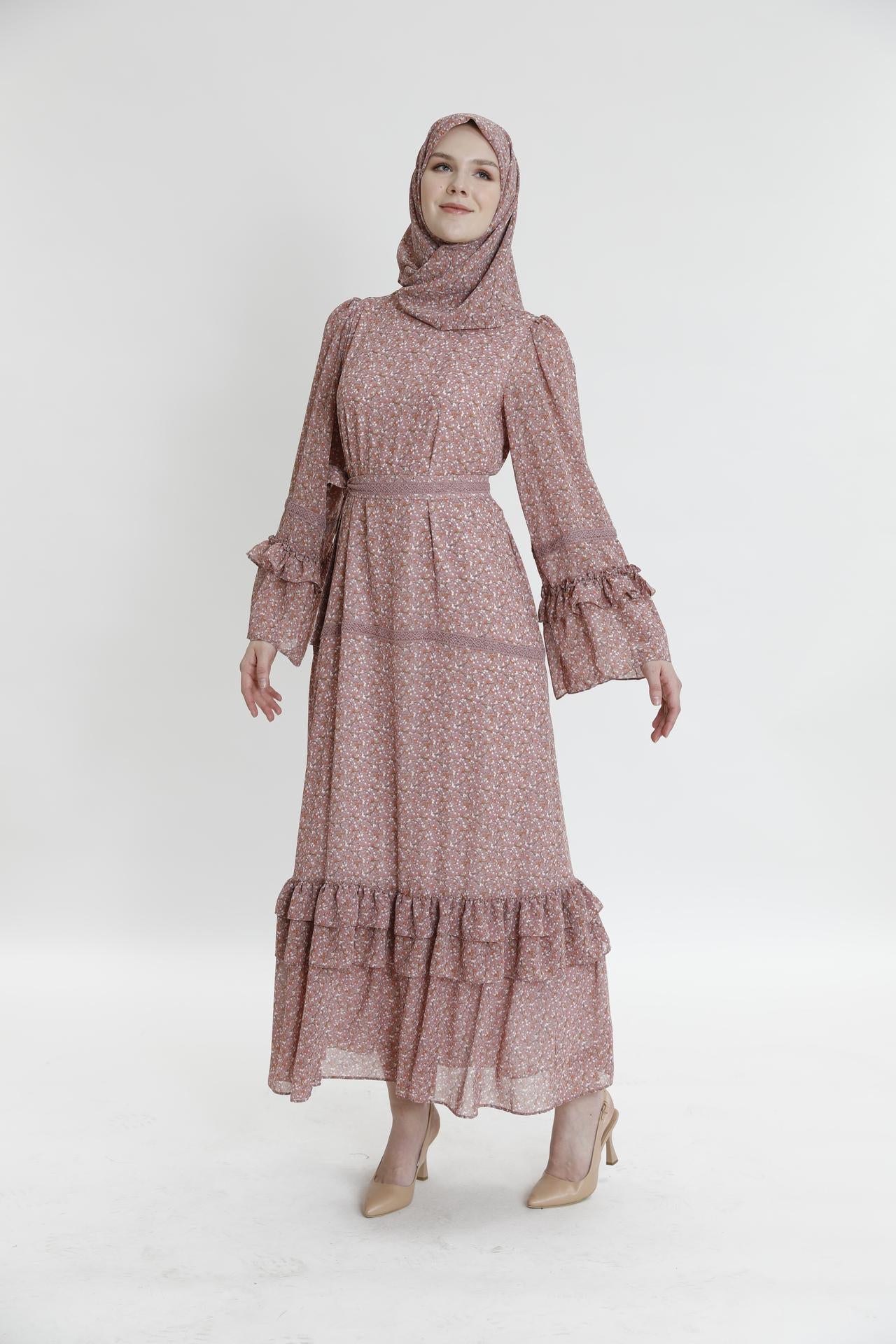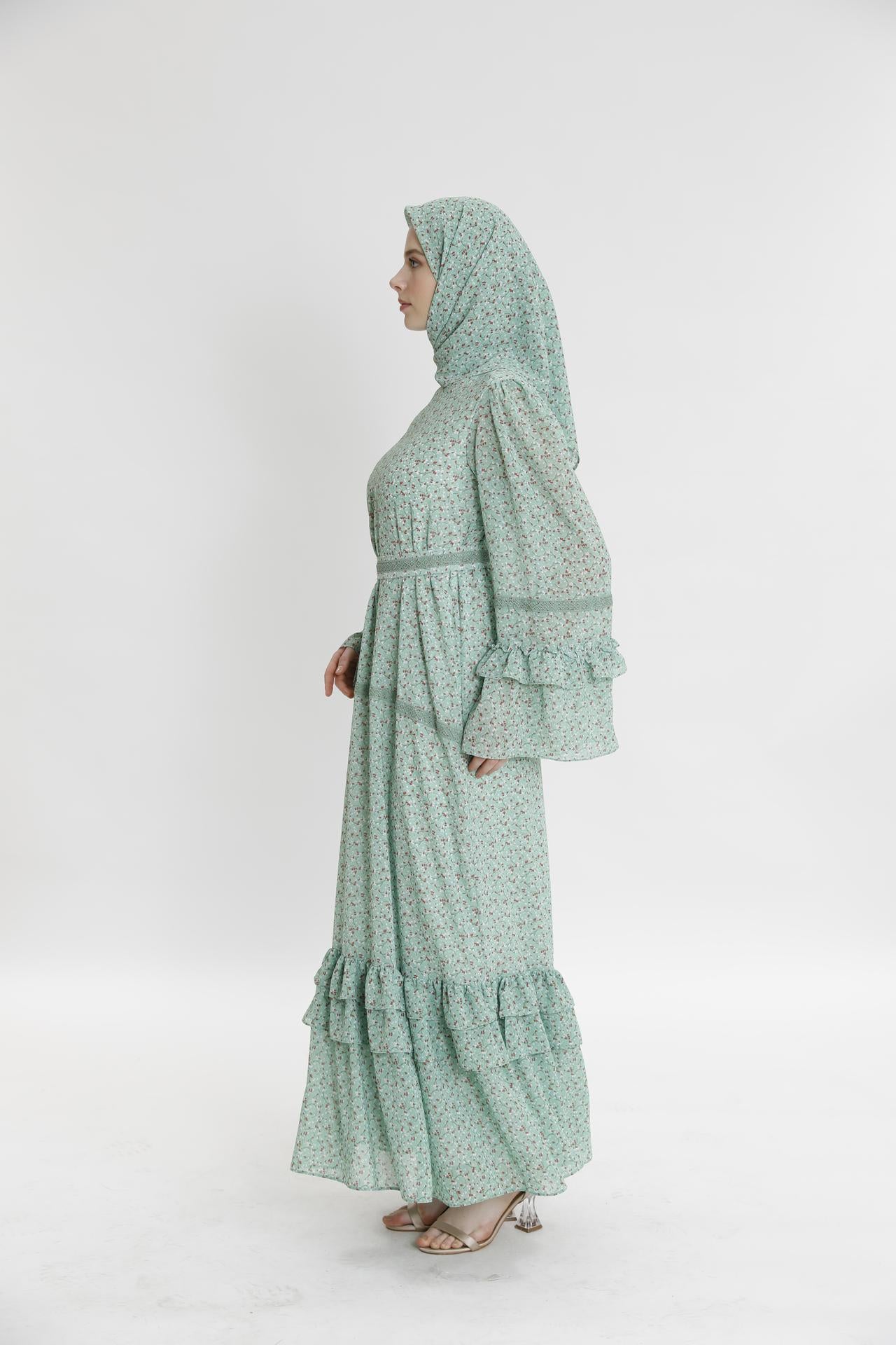 Длинное платье с рюшами и маленьким цветочным узором
