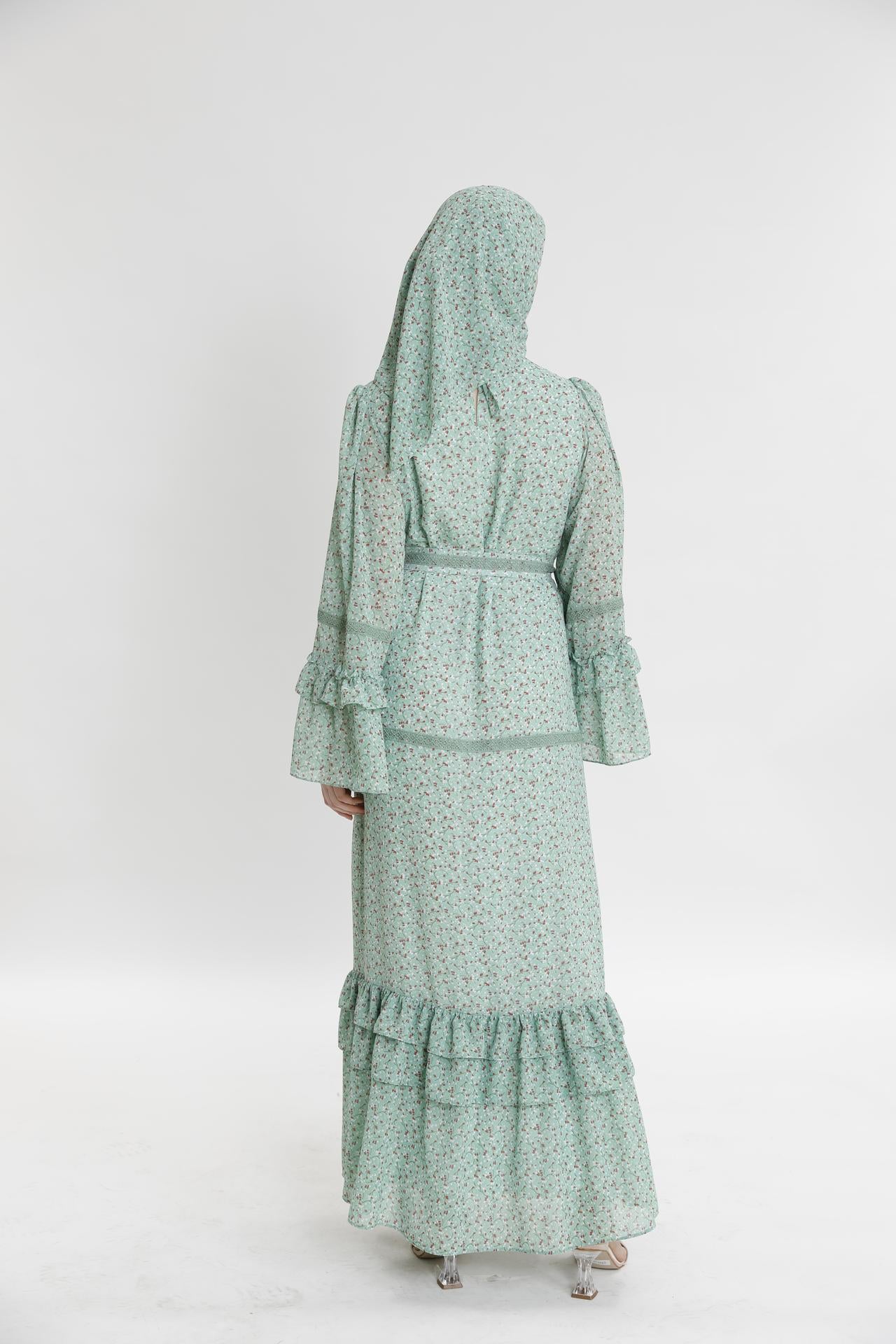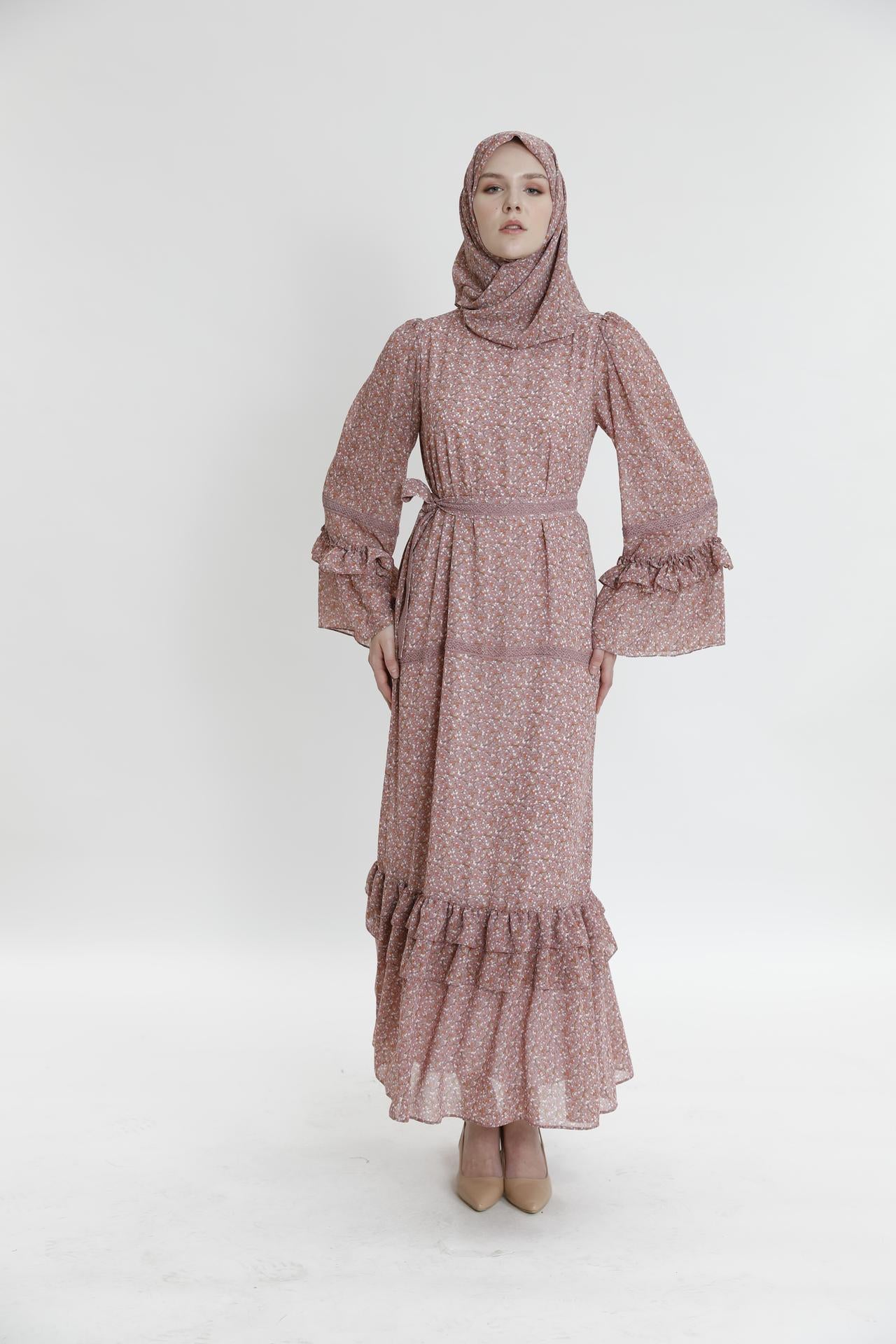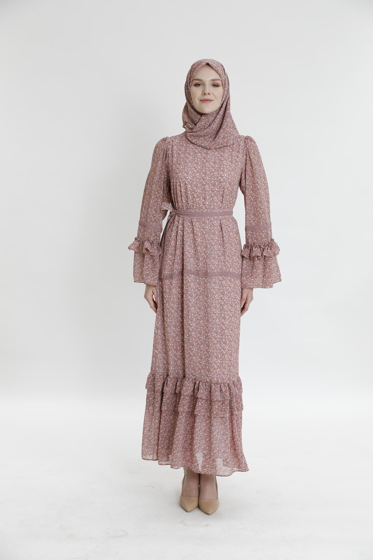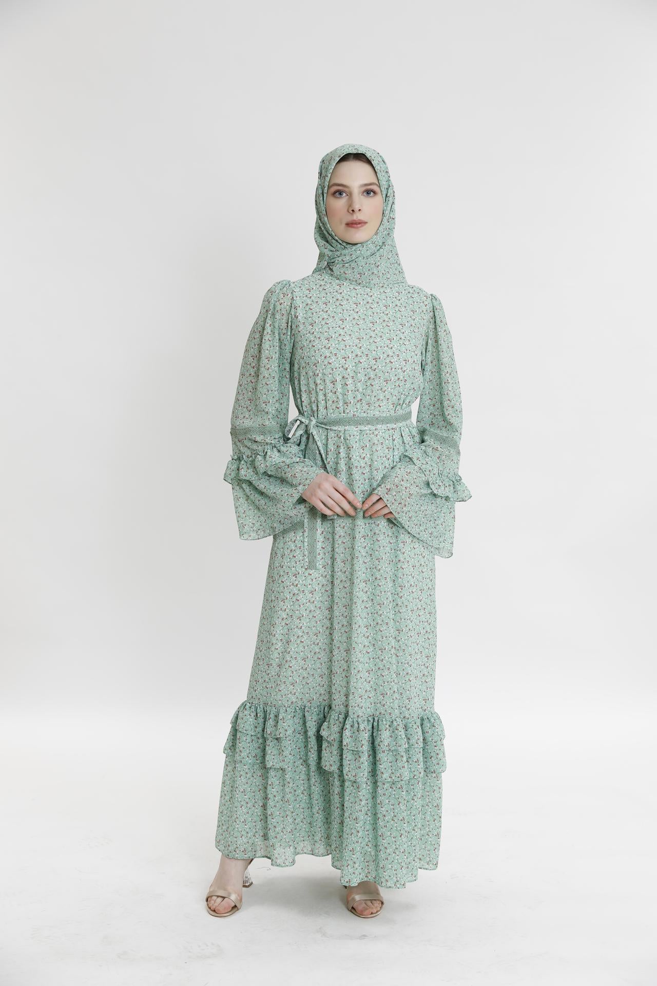 Длинное платье с рюшами и маленьким цветочным узором