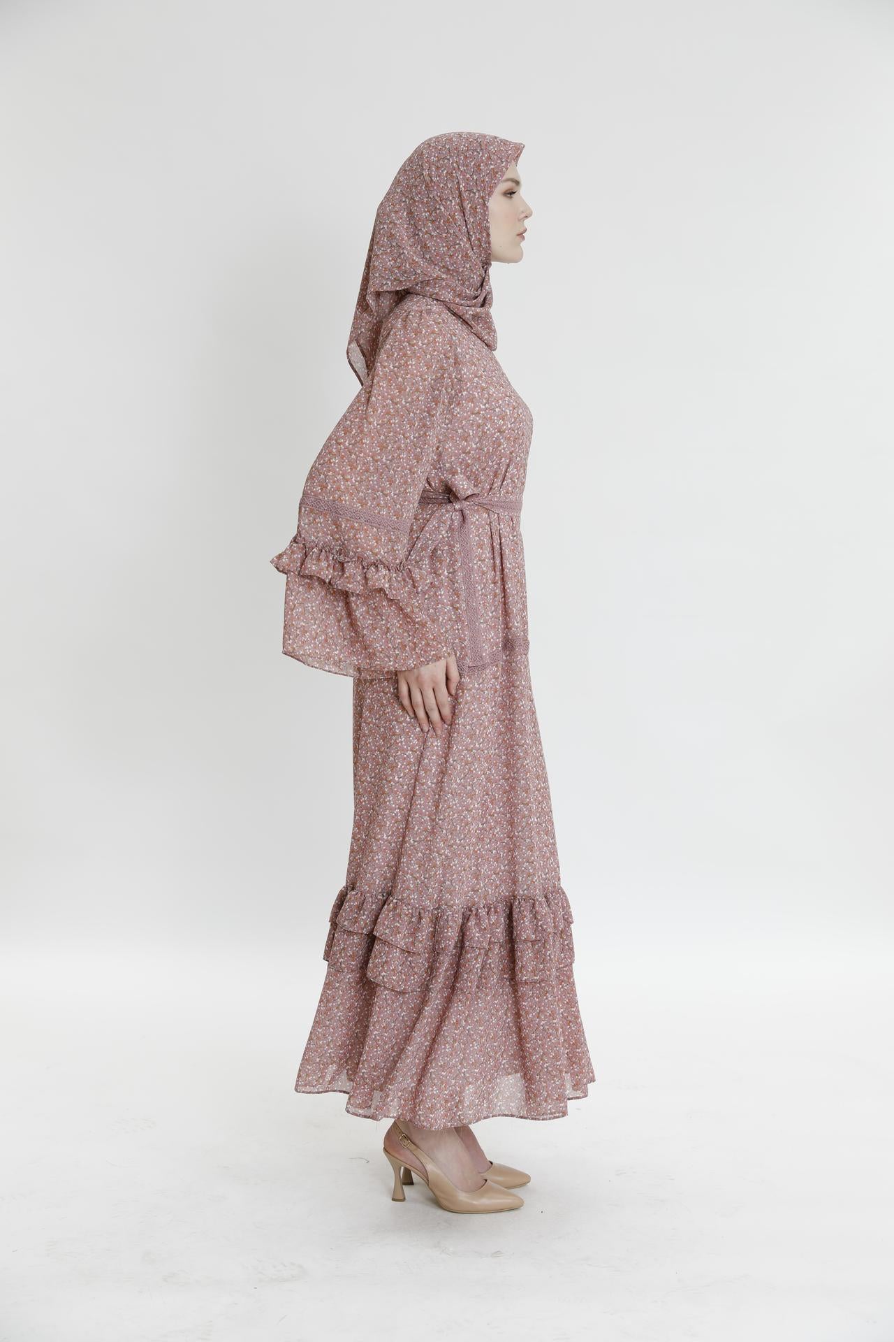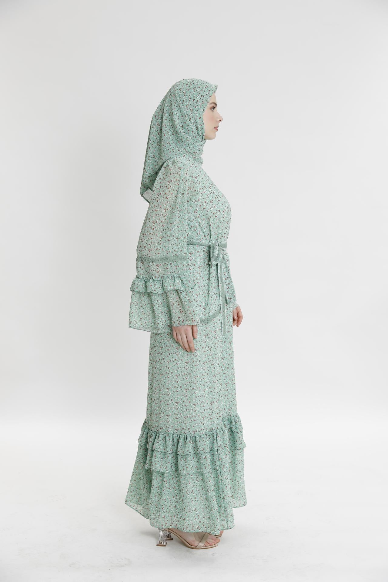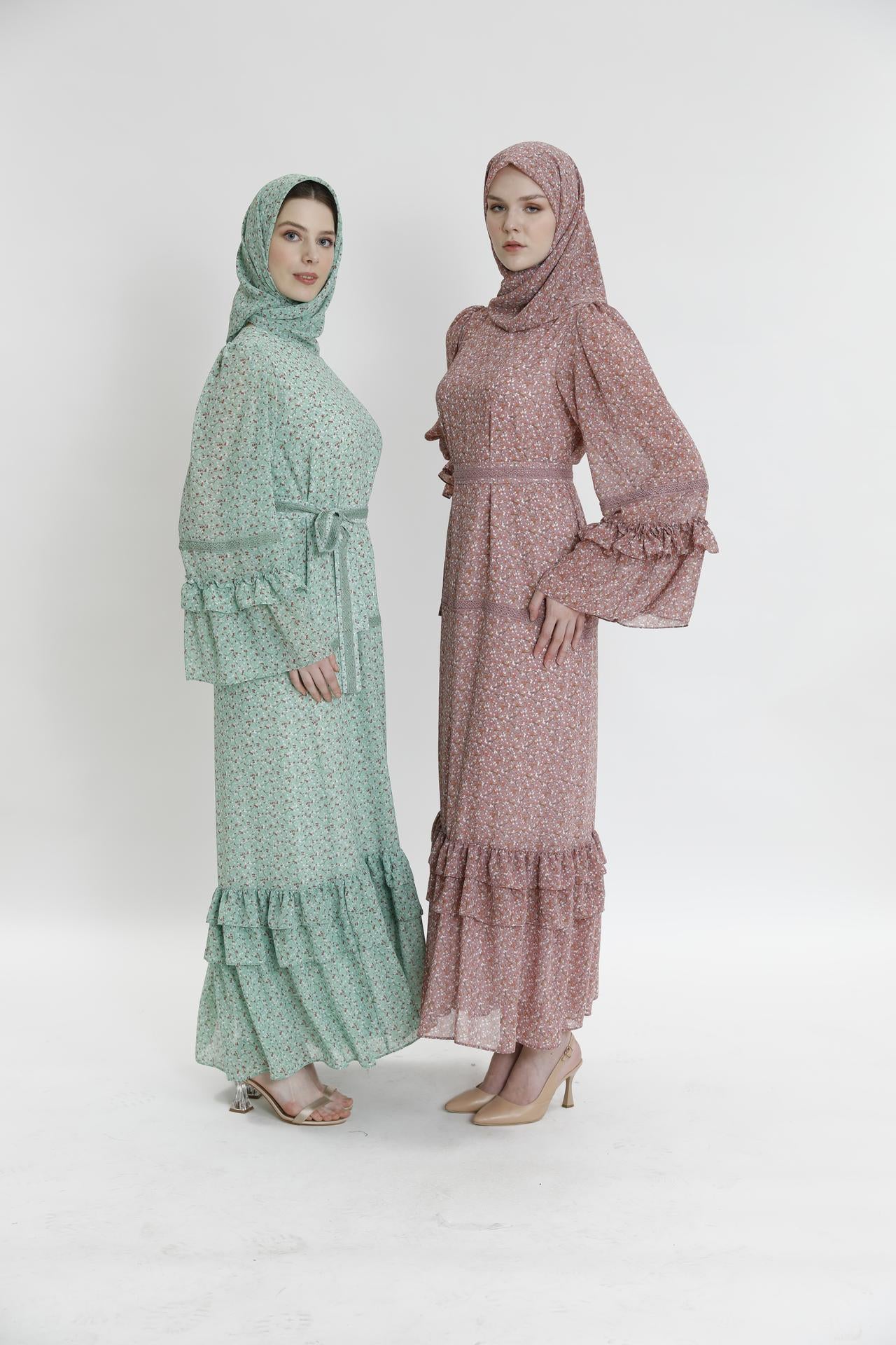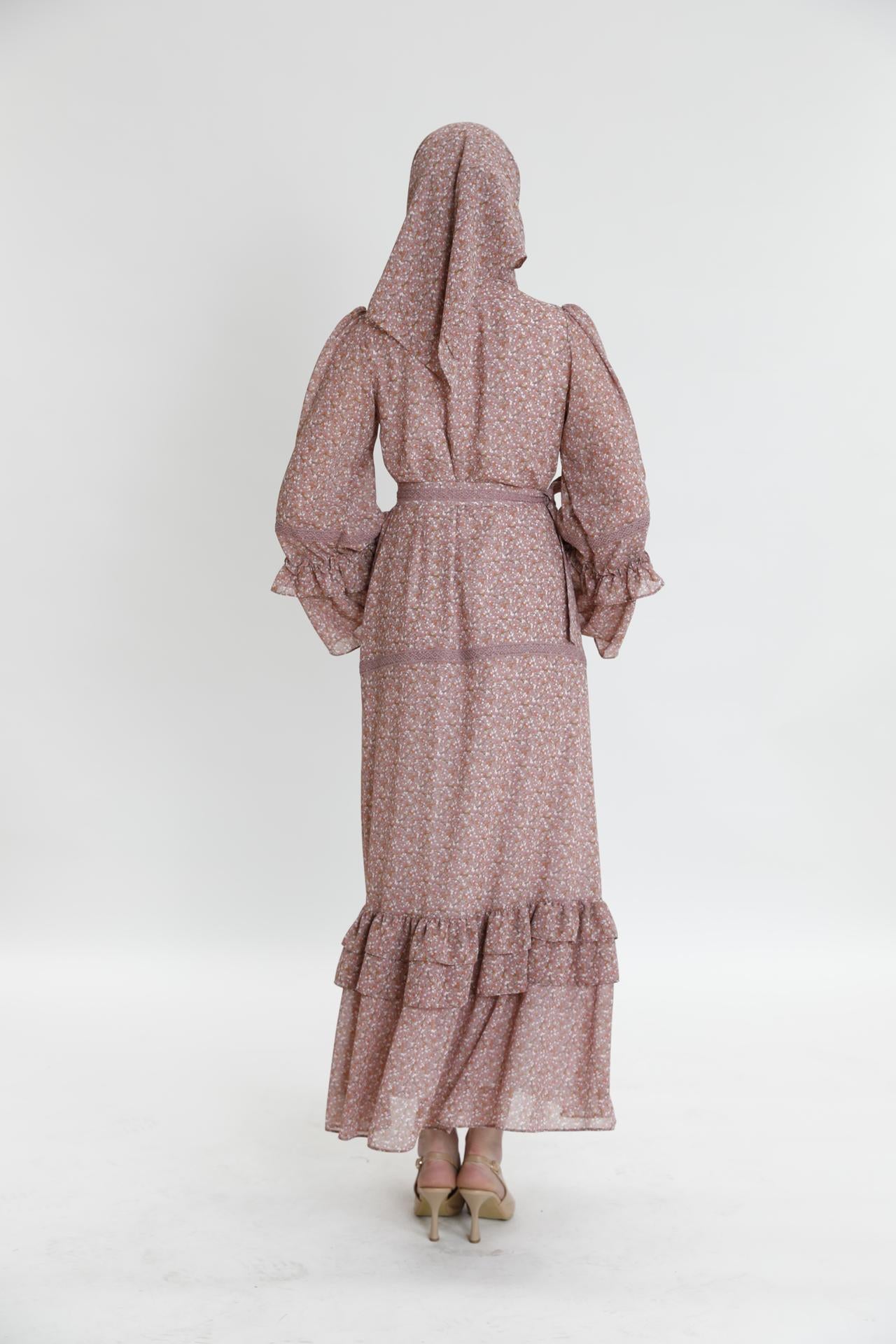 Длинное платье с рюшами и маленьким цветочным узором