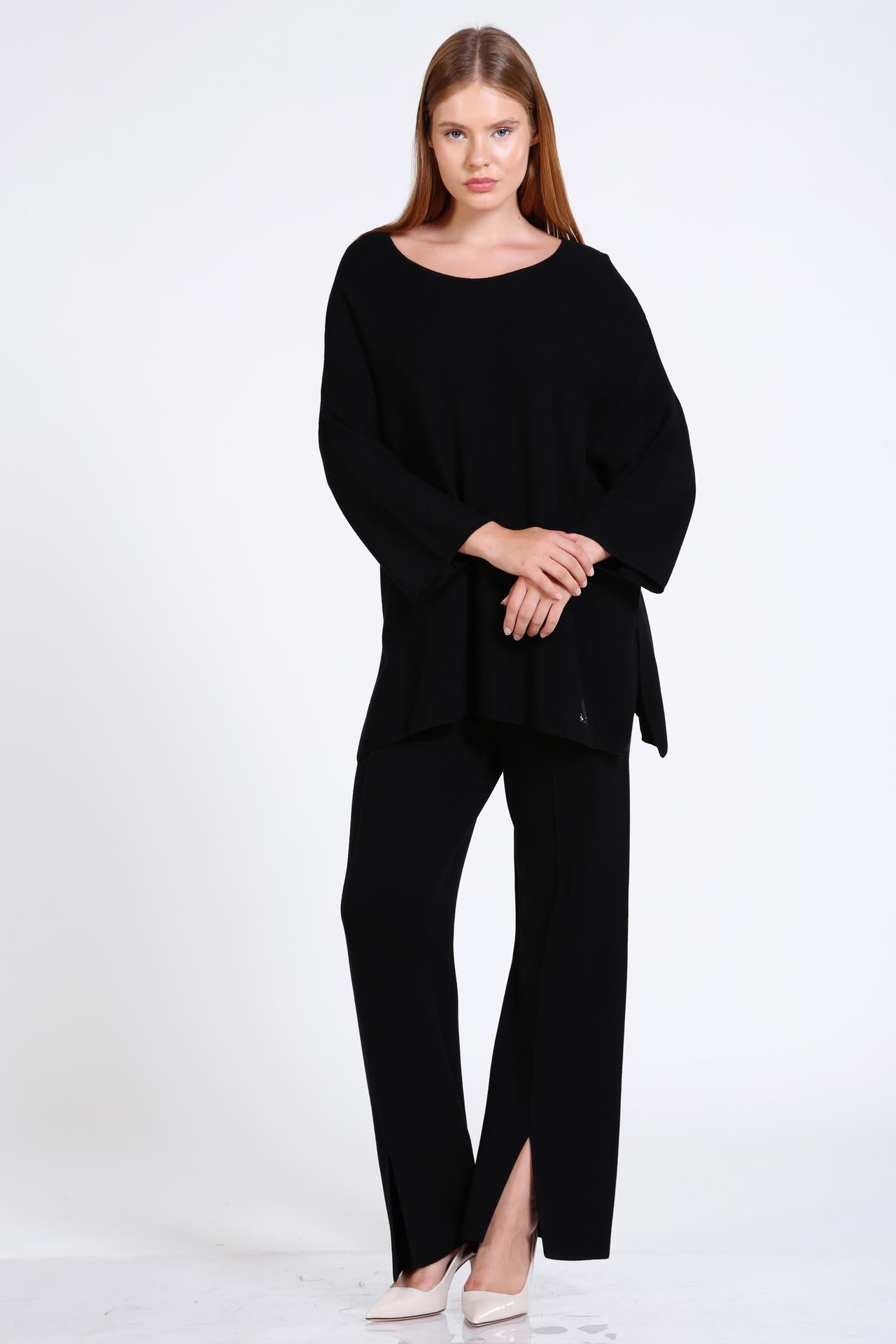 Комплект трикотажа с разрезами от Sassofono, сочетающий в себе элегантность и комфорт, устанавливает новый стандарт женской одежды. Хотя он позволяет вам произвести сильное впечатление в профессиональной среде, он также сохраняет комфорт благодаря своим разрезам и качественному трикотажному материалу.